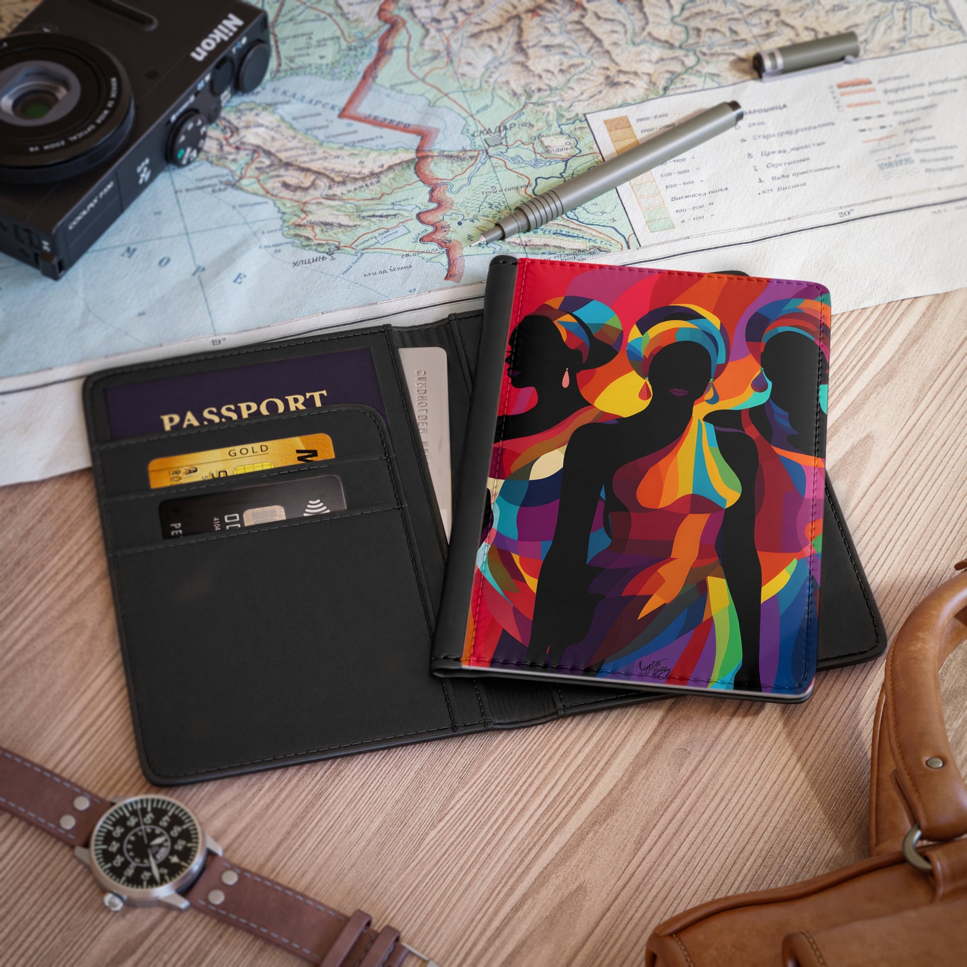 Girlfriends In Abstract Vegan Leather Black Art RFID Blocking Passport Cover