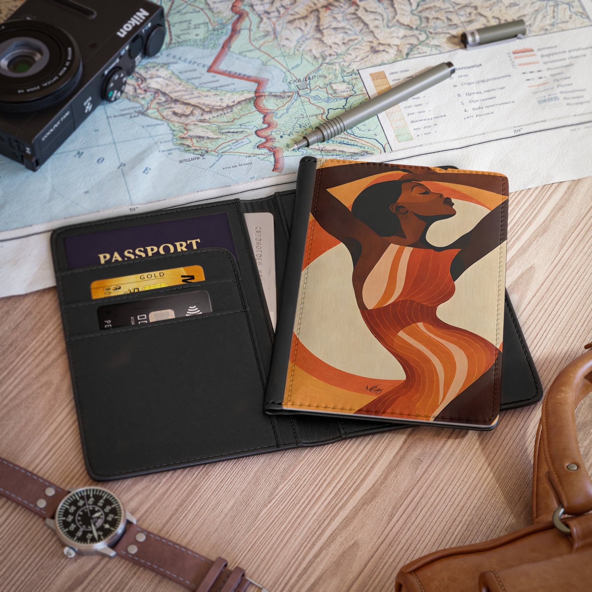 Retro Feelings Vegan Leather Black Art RFID Blocking Passport Cover
