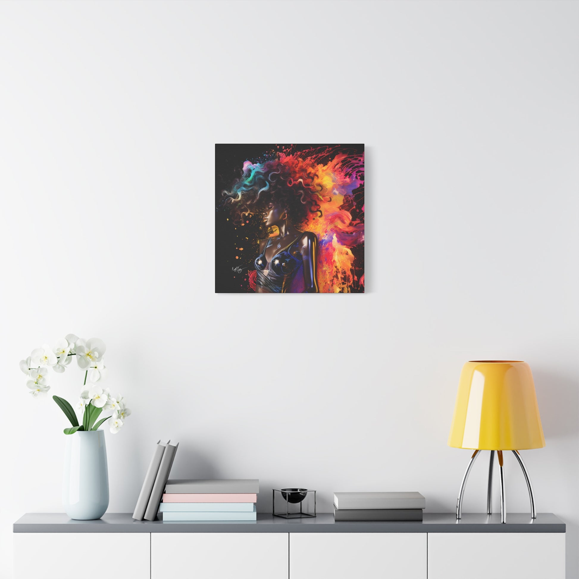 Elevate your home decor with this stunning Colors Of The Universe Afrocentric Black Woman Abstract Fantasy Art Wall Print. The vibrant colors and unique design will add a touch of sophistication to any room, creating a mystical and creative atmosphere. This wall print is perfect for art lovers, Afrocentric decor enthusiasts, and those looking to add a pop of color to their living space. Ideal for birthdays, housewarmings, and art appreciation occasions.
